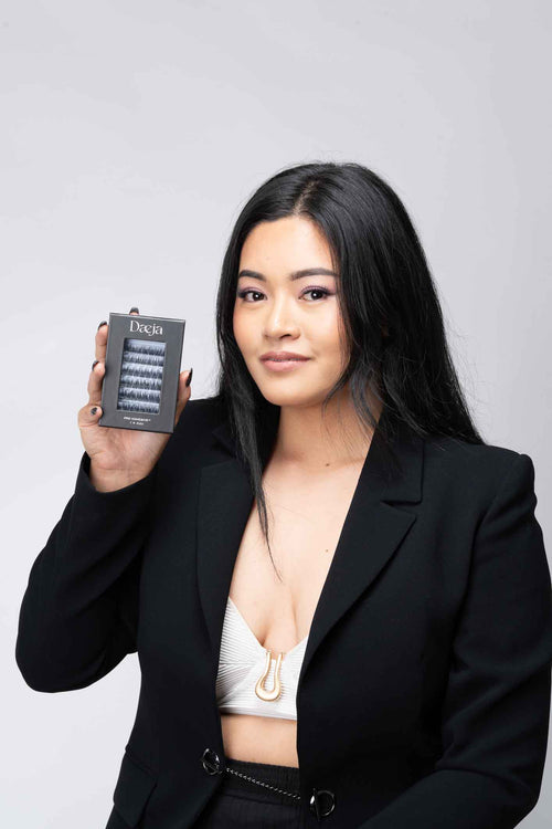 This frustration sparked my creativity, leading to the concept of Pre-Xdhesive lashes, our first product. Once back home, I dedicated myself to designing and testing the lashes, working with strangers and myself as BETA testers. Positive feedback poured in, with countless people expressing how I had helped solve their current issues, which motivated me to make it happen, so Daeja was born.